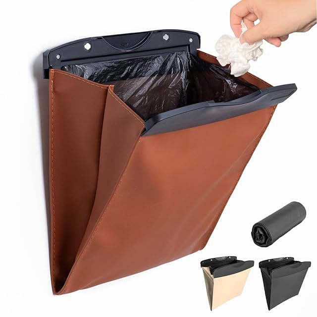 【フック&テープでW固定】 車 ゴミ箱 スリム 《袋20枚付》 車用ゴミ箱 カー用品 ブラウン