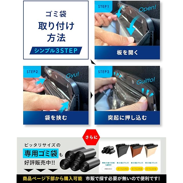 【&注意事項】本製品は車のバックポケット専用ゴミ箱です。ポケットの厚みは最大6mm、横幅は19.5cm以内まで対応しております。ご購入前に必ずサイズをご確認ください。購入後30日以内はサイズ違いや初期不良などいかなる理由であっても、返品・返金可能です。【内容物】車 ゴミ箱 本体(×1)、専用ゴミ袋1ロール(×1)計2コ