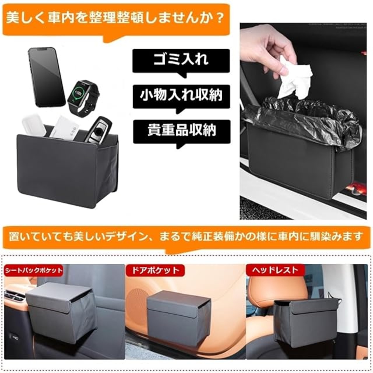 商品名:QueensCity 車 収納 ゴミ箱 小物入れ 小物収納 車用ゴミ箱 小物 ごみ箱 車内 グッズ ポケット 合成皮革 (ブラック)