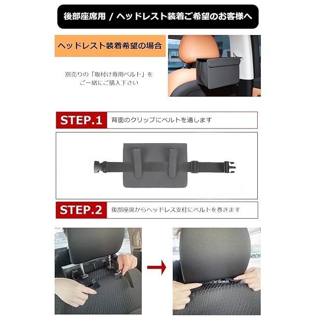【使用用途】車内の比較的コンパクトなゴミ箱(ダストボックス)・車内の小物収納ポケットとしての便利グッズです。ドアポケットやシートバックポケットなどクリップを引っ掛けれる場所ならどこでも装着可能です。