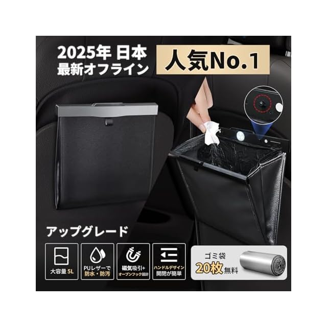 【2025年改良型車ゴミ箱】:運転席や副操縦席のバックポケットに掛けられ、ゴミを簡単に捨てられる車用ゴミ箱です。フックでしっかり固定し、倒れてこぼれることがなく、場所も取りません。ゴミ袋20枚プレゼント。収納にも使え、小物の収納にもおすすめです。