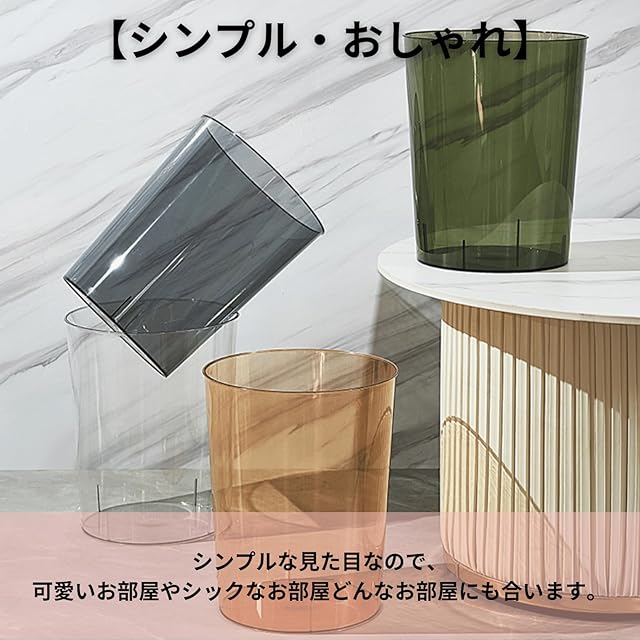 商品名:Modest Joy ゴミ箱 丸形 透明 耐久性 屋外 おしゃれ スリム 10L 19cm × 21.5cm グレー