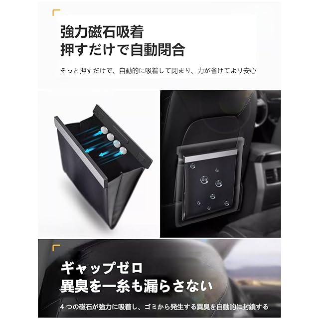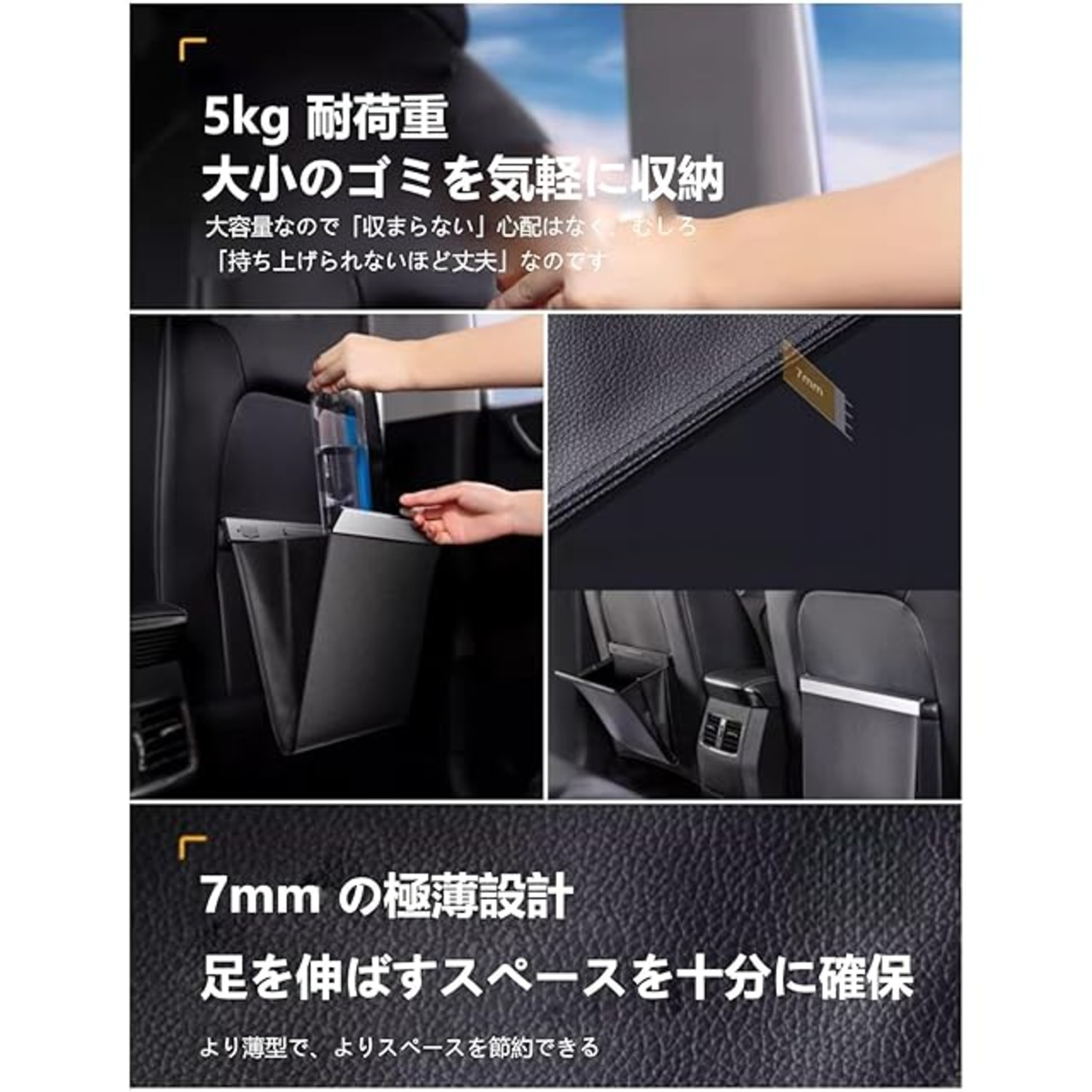 商品名:車 ゴミ箱 スリム 袋12枚付 車用ゴミ箱 後部座席 収納 小物入れ カー用品 便利グッズ PUレザー ブラック