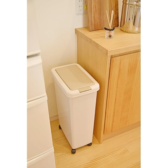サンコープラスチック 日本製 ゴミ箱 スリムプッシュ 30L キャスター付き ライトブラウン