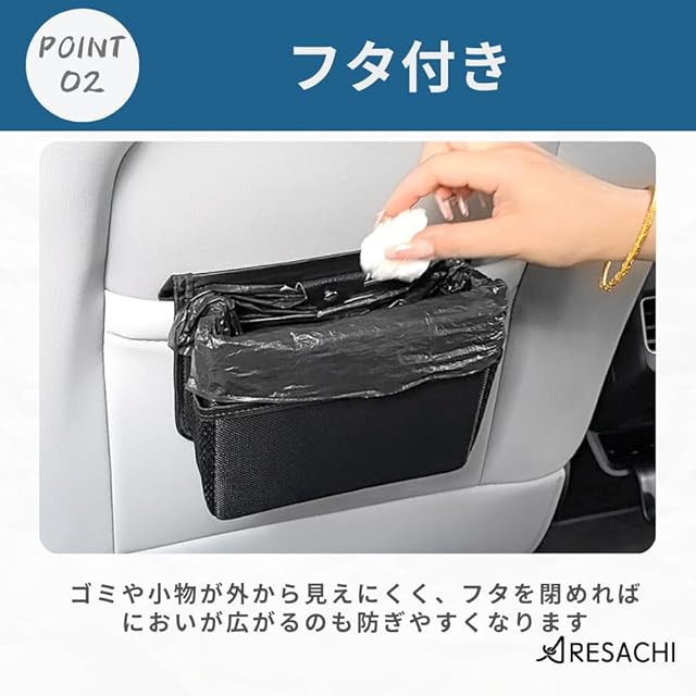 【フタ付きでにおいや見た目をカバー】中に入れたゴミや小物が外から見えにくく、ふたを閉めればにおいが広がるのも防ぎやすくなります。車内の清潔感を保ちやすく、使わないときもすっきりとした見た目をキープできます。ちょっとした気配りで快適な空間づくりをサポートします。