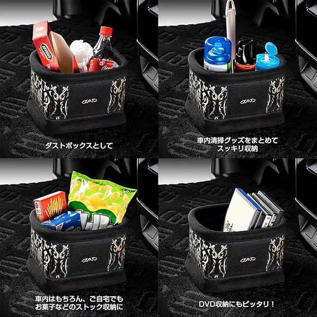 【 大容量角型モデル 】500mlペットボトルが6本も入る大容量の角形モデルです。ダストボックスとしても使用頂けますが、その大容量を生かして、DVDやCD入れ、車内清掃用具入れなどの収納スペースとしてもご使用頂けます。