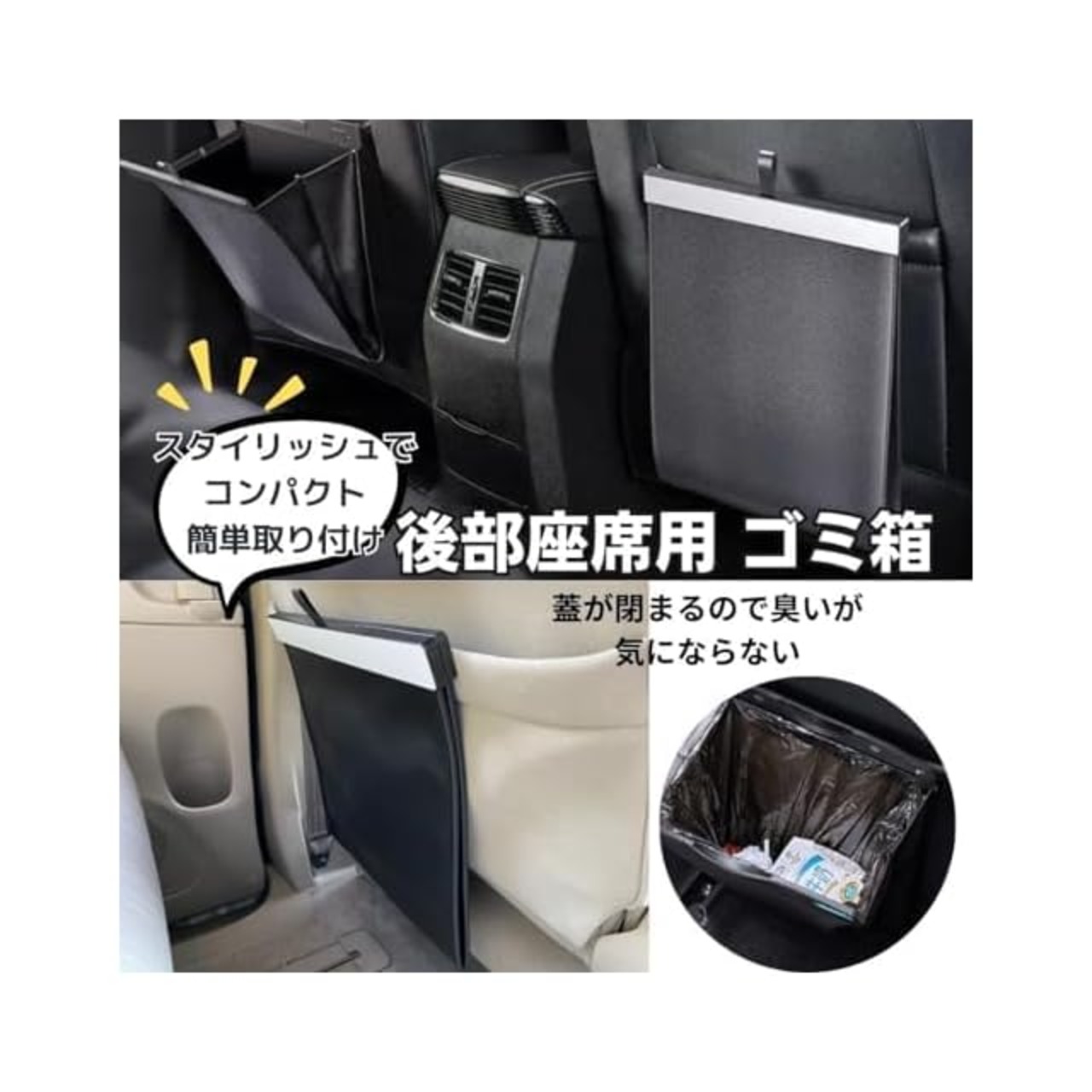 【後部座席用ごみ箱】車にゴミ箱を置くとき床にただ置くだけだと振動や車がカーブに差し掛かったときに反動や振動ですぐに倒れてしまいその度に直さないといけないのでとても面倒です。この後部座席用ごみ箱はバックシートにフックで挟むだけなので取付簡単です。