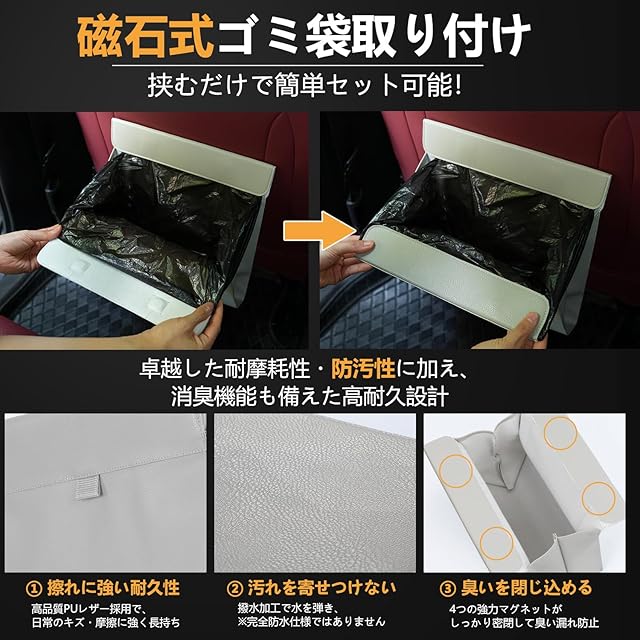 【マグネット式で超簡単】片手でパッと開閉 ・6ヶ所の強力マグネット(耐荷重500g)でゴミ袋をピタッと固定 ・片手操作でサッと開閉可能、運転中のストレスゼロ ・磁石式だから面倒な取り付け作業不要