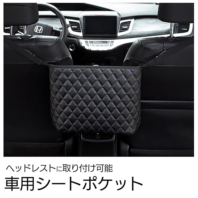 ※一部の車種では、グラブレールやフックなどを活用して取り付けることも可能です。シート形状によって取り付けが難しい場合がありますので、ご確認のうえお買い求めください。車内の整理整頓をサポートする便利な収納アイテムです。