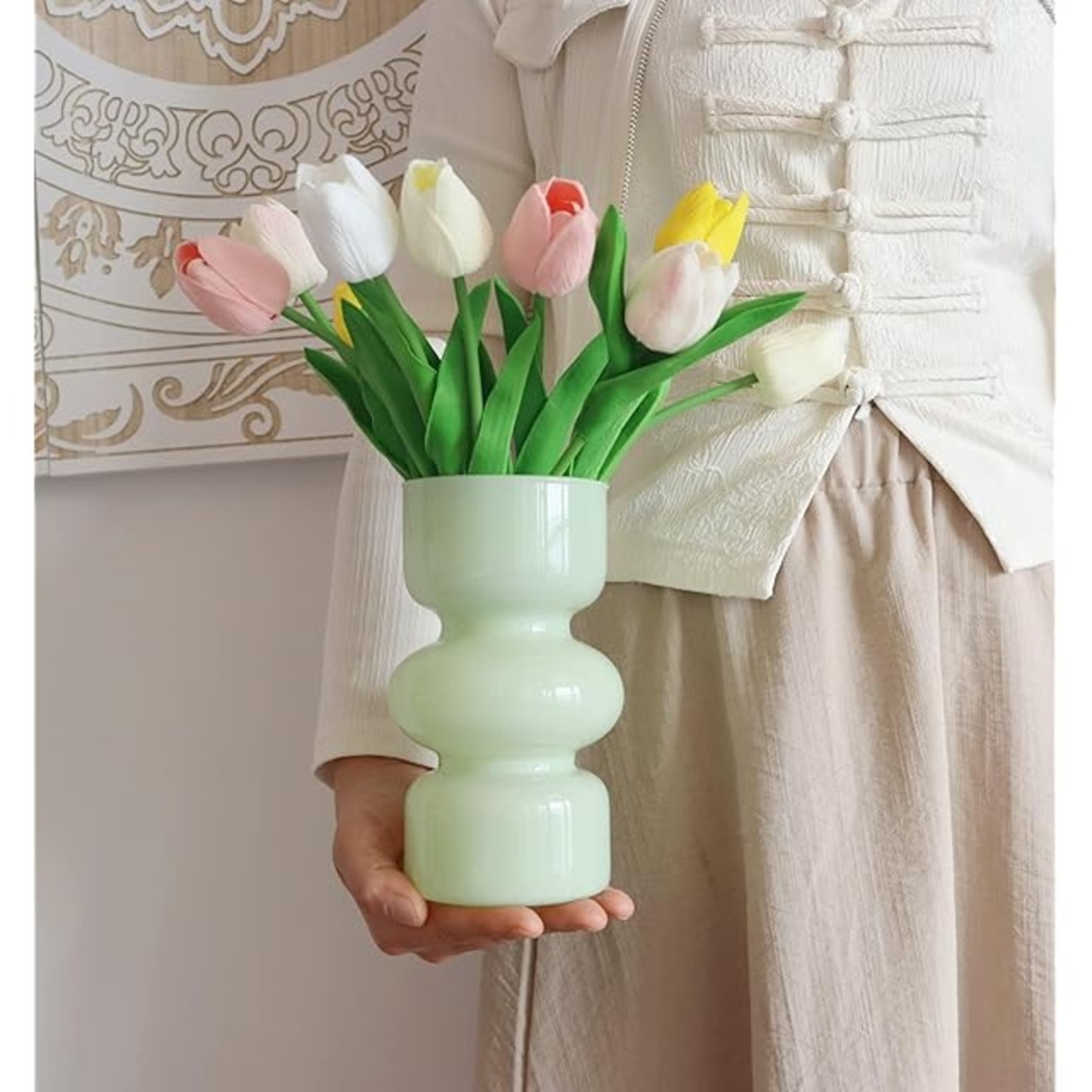 JSPYFITS 花瓶 ガラス 花びん 割れない 一輪挿し おしゃれ がびん ガラ スバブルベース 容器 吹きガラス 高さ18cm 水栽培 生け花 造花 花束 透明 水栽培 花器 インテリア飾り 置物 贈り物 玄関、書斎、部屋、窓辺に(ミルクグリーン)