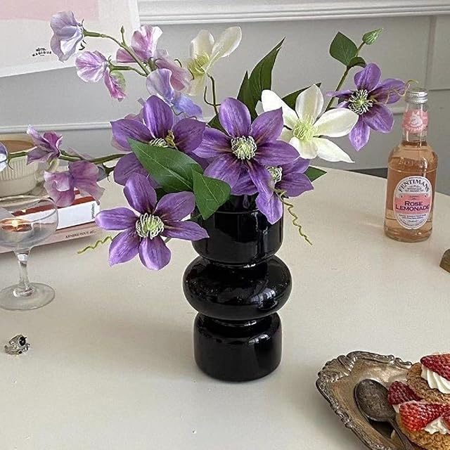 GULAYI花瓶 一輪挿しガラスフラワーベース 花器 ガラス花瓶 おしゃれ 北欧 透明 ガラスベース ガラスボトル アレンジ インテリア雑貨 インテリア飾り (ブラック-19cm)