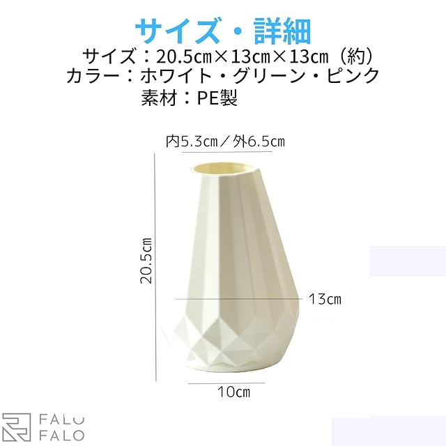 商品名:FALOFALO 花瓶 プラスチック フラワー ベース 割れない シンプル インテリア 北欧風 (ホワイト)