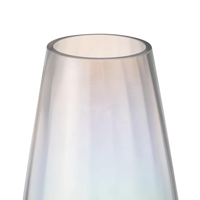 上品なオーロラ色がおしゃれで涼しげなガラスのフラワーベースです。<br/>ベーシックな美しいフォルムでお花を引き立てます。<br/>プチブーケがきれいに収まるサイズ感です。<br/>【注意事項】<br/> ハンドメイドのためデザインやサイズに個体差がございます。<br/> 直射日光が当たる場所、お子様やペットの手の届く場所、火の側では使用せず、安定性のある場所でご使用ください。<br/> 用途以外に使用しないでください。