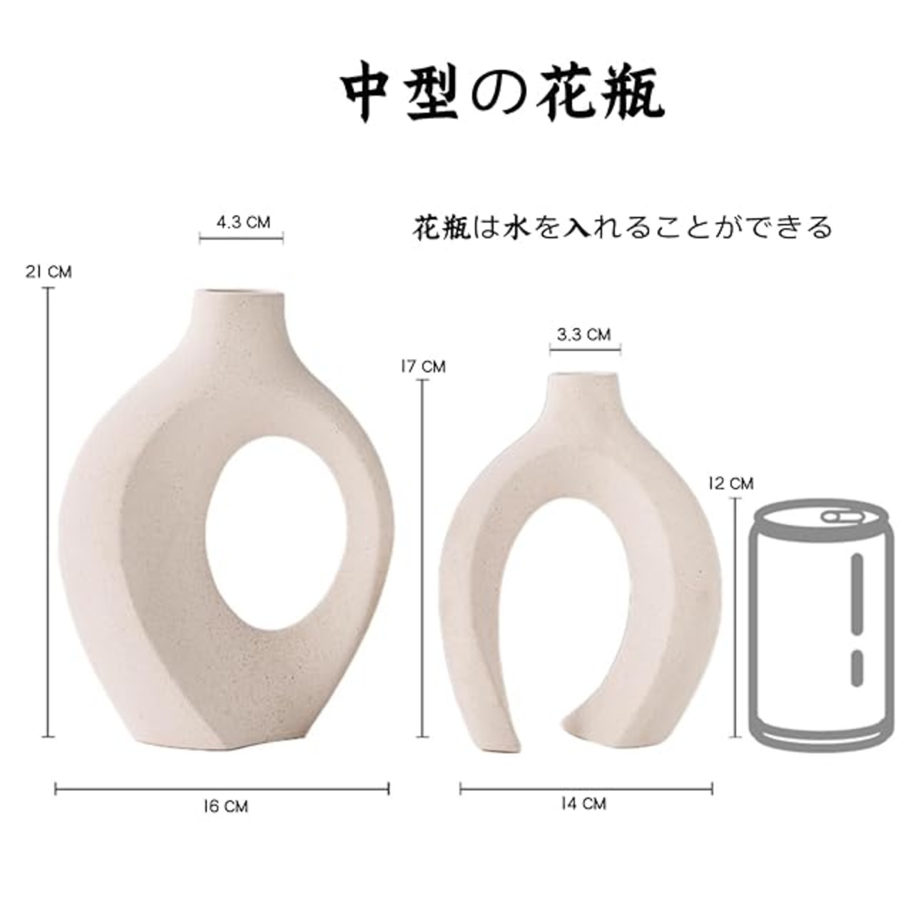 商品名:Levvohd 花瓶 おしゃれインテリア, ベース陶器, 中空セラミックドライフラワー一輪挿し花瓶 2点セット(ベージュミディアム)