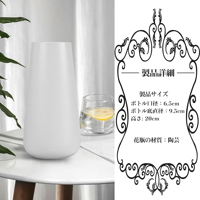 【サイズ】 瓶口直径:6.5cm、瓶底直径:9.5cm、高さ:20cmです。 [材質] 陶器です。ご注意:ご購入前に本花瓶の口径と高さが似合うかどうかご確認くださいませ。