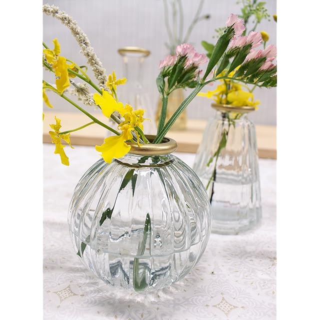 キーストーン 花瓶 ゴールドリム グラスベース ボール 8.5×8.5×8cm クリア IN050867