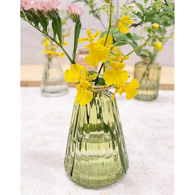 キーストーン 花瓶 ゴールドリム グラスベース トライアングル 7.5×7.5×10cm グリーン IN050911