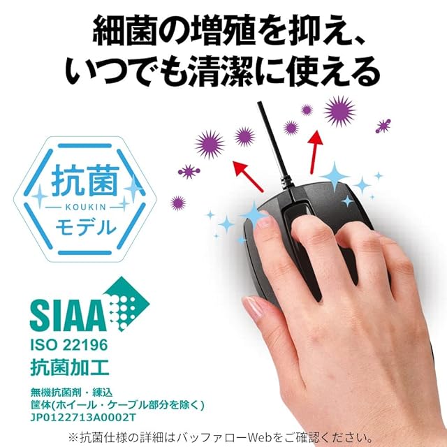 商品名:バッファロー 3ボタン 有線 BlueLED 高耐久 抗菌 マウス ブラック BSMBU115BK