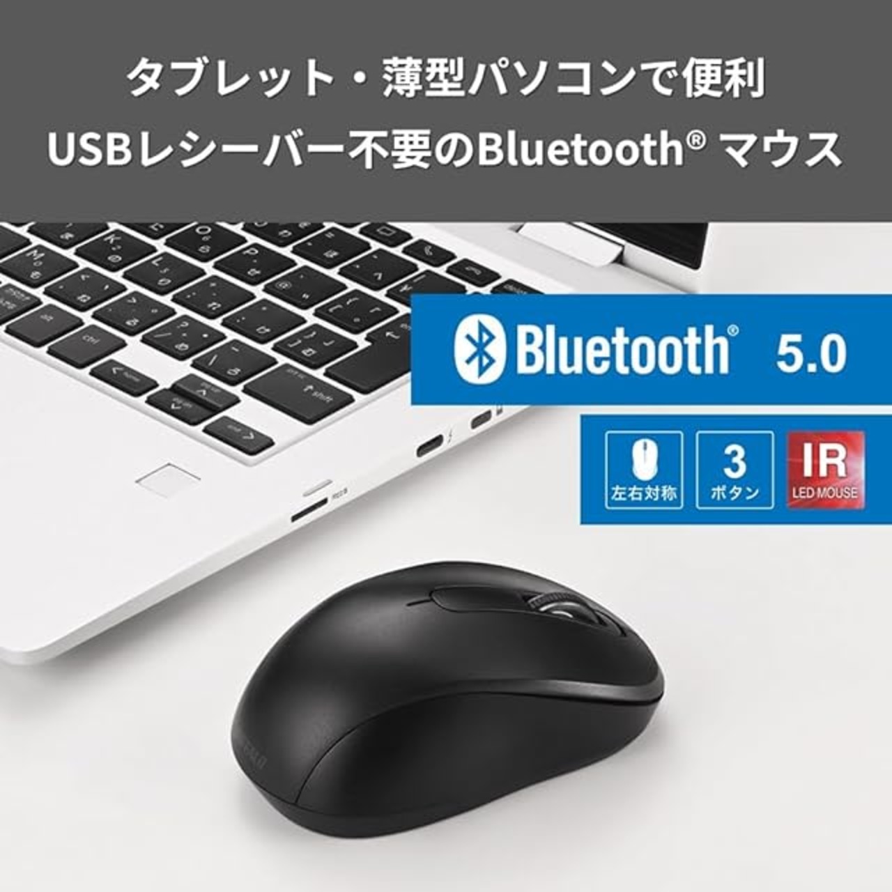 商品名:バッファロー マウス ワイヤレス Bluetooth 5.0 3ボタン 左右対称 両利き 省電力 抗菌 軽量 ブラック BSMRB015BK