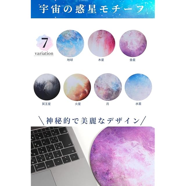 惑星をモチーフにしたユニークなマウスパッドです。光学式マウス・レーザー式マウスのどちらにも対応した円形タイプとなっております。