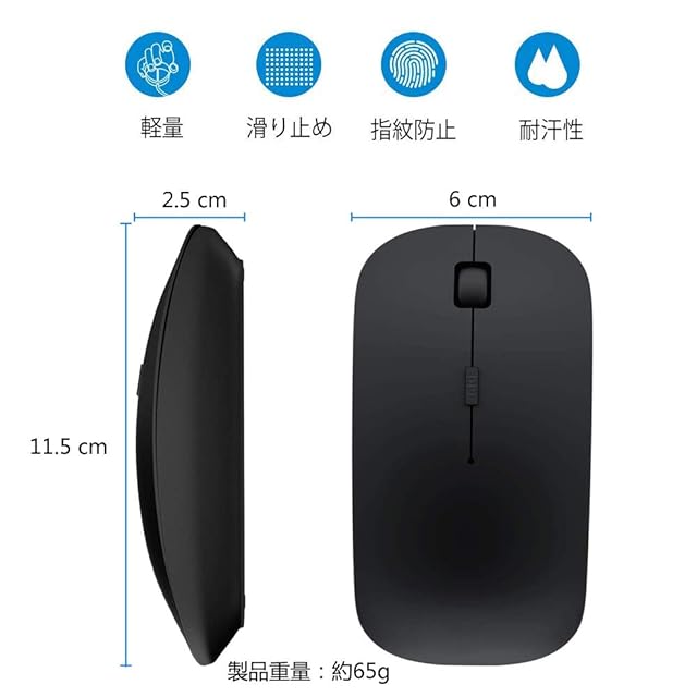 商品名:Scheki マウス Bluetooth Type-C充電式 ワイヤレスマウス 無線マウス 超薄型 静音 3DPIモード 高精度 持ち運び便利 USB充電式 USBレシーバーなし ブラック
