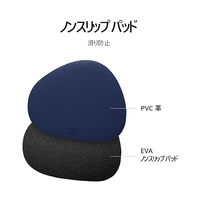 【滑り防止ノンスリップパッド】 マウスパッドの裏面に耐熱性の優れた高級ノンスリップパッドを付着しました。 机から簡単に押されたり滑ったりせず、不便なく安定感持って使用できます。 前面は雰囲気のある革の生地、裏面は実用性の高いノンスリップパッドを使用して デザインと実用性両部分を全て満たす製品です。