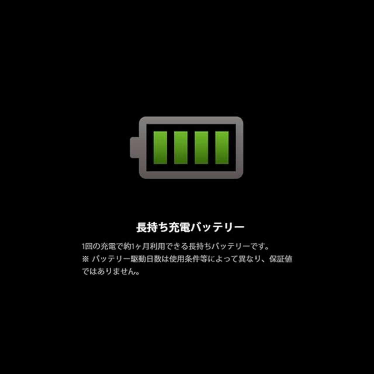 1回の充電で約1ヶ月利用できる長持ちバッテリーです。※ バッテリー駆動日数は使用条件等によって異なり、値ではありません。