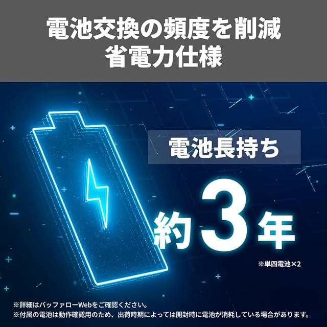 【省電力】単4電池2本で約3年間使える省電力設計で、電池交換の頻度を削減できます。