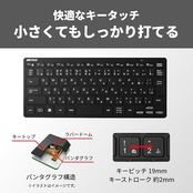 【コンパクト】限られたスペースでの使用や、持ち運びにも便利な薄型&コンパクト設計のワイヤレスキーボードです。