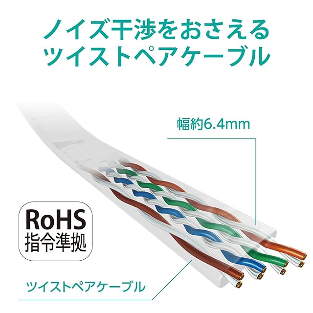 Cat6の2倍である500MHzまでの高周波帯域まで対応しており、ノイズ干渉にも強く、高速で安定したネットワーク環境を実現します。