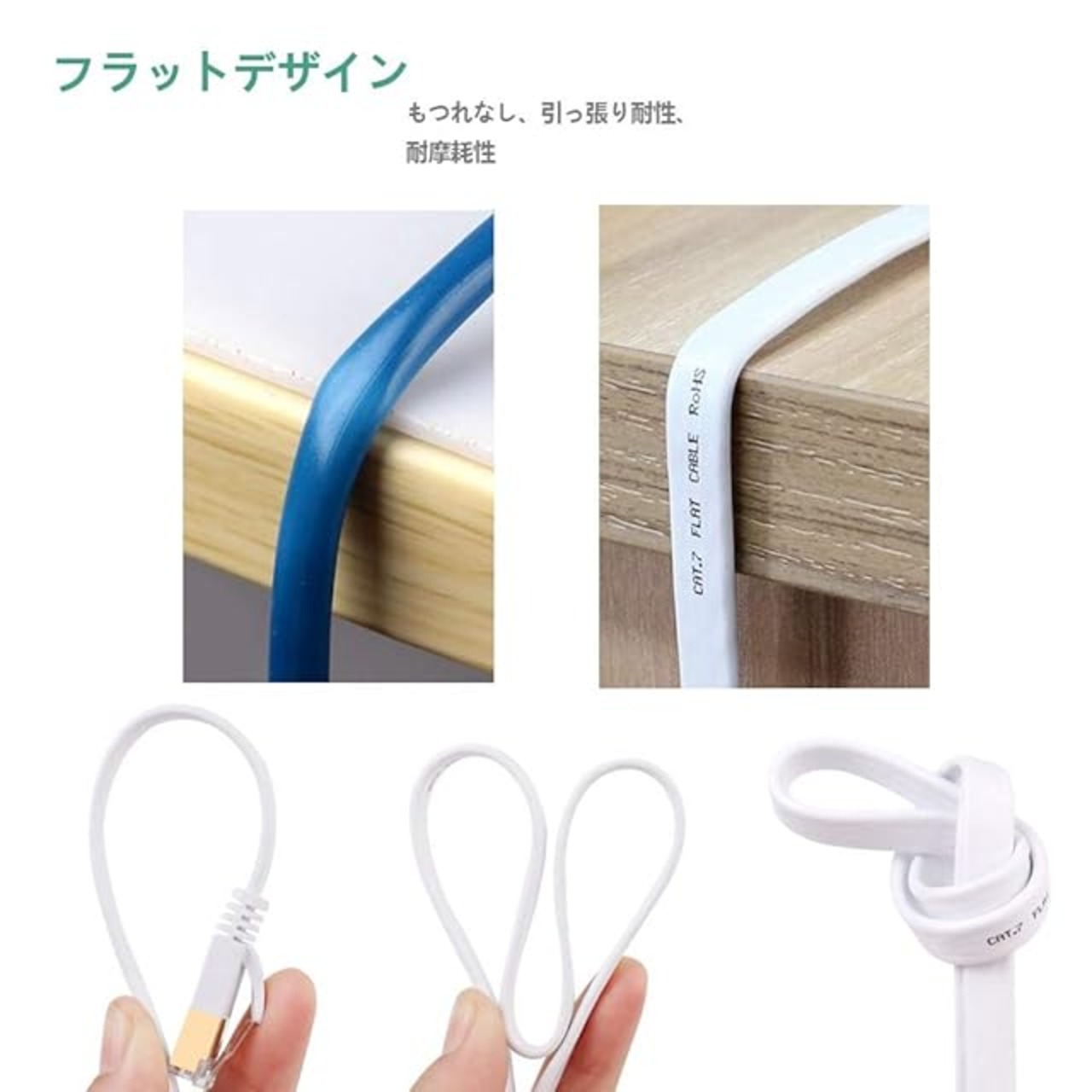 フラットデザインとフリークリップ:該当ケーブルは超薄型技術採用し、もつれたコードを避けてスペースを節約し、敷物やカーペットの下でケーブルを配線しても目立たない、インテリア装飾の美観性を損ねない。 非常に柔軟で、スリムながら頑丈で、壁に沿って並ぶのが簡単です。 ケーブルクリップが無料で同梱されます。