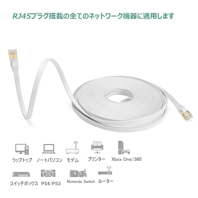 互換性:既存のCAT5、CAT5E、CAT6、Cat6a LANケーブルなどと互換性があります。両端はRJ45コネクタで特に設定なし、ルータ、スイッチ、ハブ、ネットワークプリンタ、Xbox、PS2、PS3、PS4、RJ45プラグを搭載したゲームボックス等に適用します。