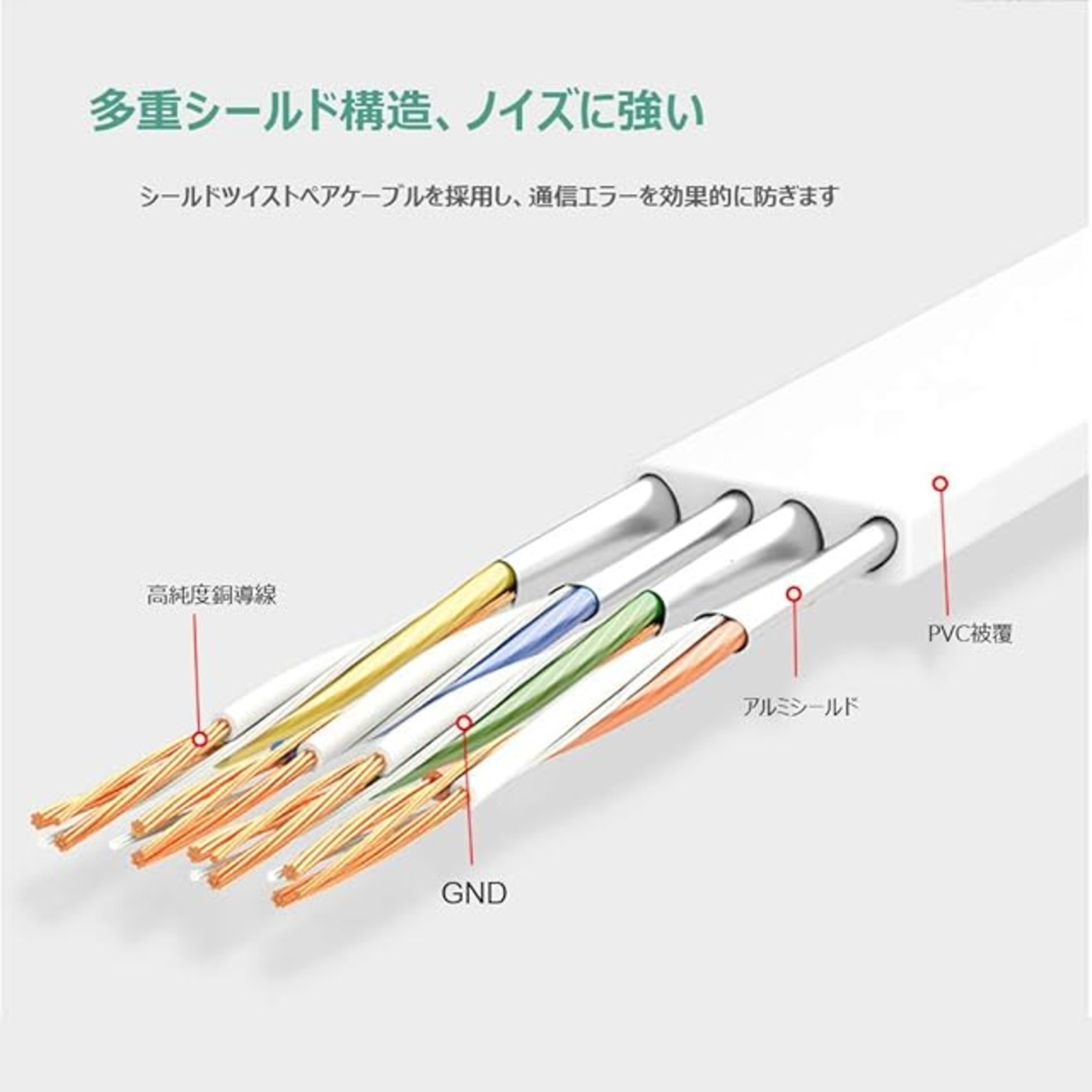 特徴:両端コネクタ付(8芯 鍍金RJ45 スリムコネクタ採用)。内蔵100%裸銅線(シールドケーブル)、最小ノイズと混信をします。。ツメ折れ防止カバー、曲げても折れない。ノイズ干渉も強い、高速で安定した。屋外使用可能な難燃性、防水、耐久性、耐候性、日除け(対紫外線)の特徴を有しております。