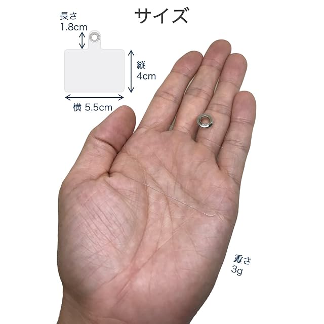 サイズ:[プレート] 幅5.5cm x 縦4cm x 厚み0.4mm 、[突起部] 長さ1.8cm x 横幅1.1cm、[リング] 内径5mm