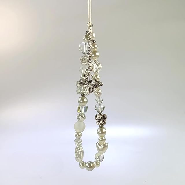 商品名:[EZ PEACH] ストラップ スマホ 手首 落下防止 携帯 ハンドストラップ 女の子 吊り下げペンダント装飾 落下防止 カラフルビーズ パール まんまるお花 全機種対応 (蝶01)