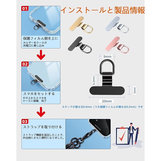 【両手解放&紛失防止】スマホストラップホルダーはスマホの落下防止に欠かせないアイテムです。様々なスマホストラップと合わせて使えば、両手を解放できます落下防止、盗難防止、紛失防止にも役立ちます。旅行、散歩、通勤、外出、自撮り、電車内の時など日常生活でスマホを落とす恐れなく片手で操作が可能です。(ストラップはこのパッケージに含まれておりません)。