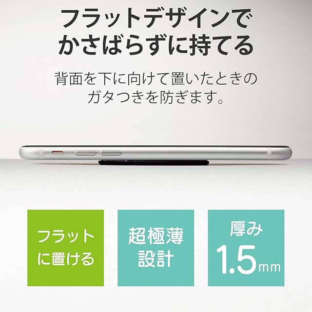 商品名:エレコム スマホグリップ スマホバンド 落下防止 [ ワイヤレス充電/電子決済 対応] 超極薄(約1.5mm) シリコン ブラック P-STBNCIBK