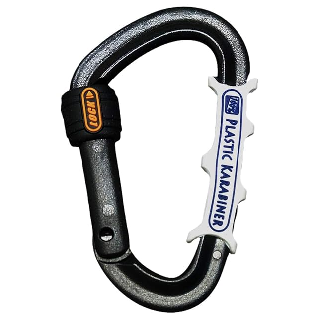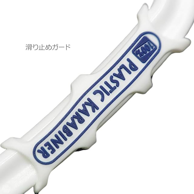 ロック機能に加え、滑り止めのガードがつきました。インストラクター、ベテランダイバーの要求に応えた強化仕様です。YKK社製、オールプラスチックで、ボディと板バネを一体成型した軽くて強靭なカラーカラビナです。色ハガレがなく、おしゃれなカラーを保ちます。またワンタッチで使えるロック機能(シリコン製)を採用、不用意な動作にも外れたりしないので安心です。金属部がまったくないので塩分にも錆びません。機械、建材、機能雑貨などに採用されているエンジニアリングプラスチック(POM樹脂)です。サイズ:最大幅 4.3 × 長さ 7.5 cm/重量:12g 引っ張り強度(縦方向):20kg カラー:ブラック、ホワイト