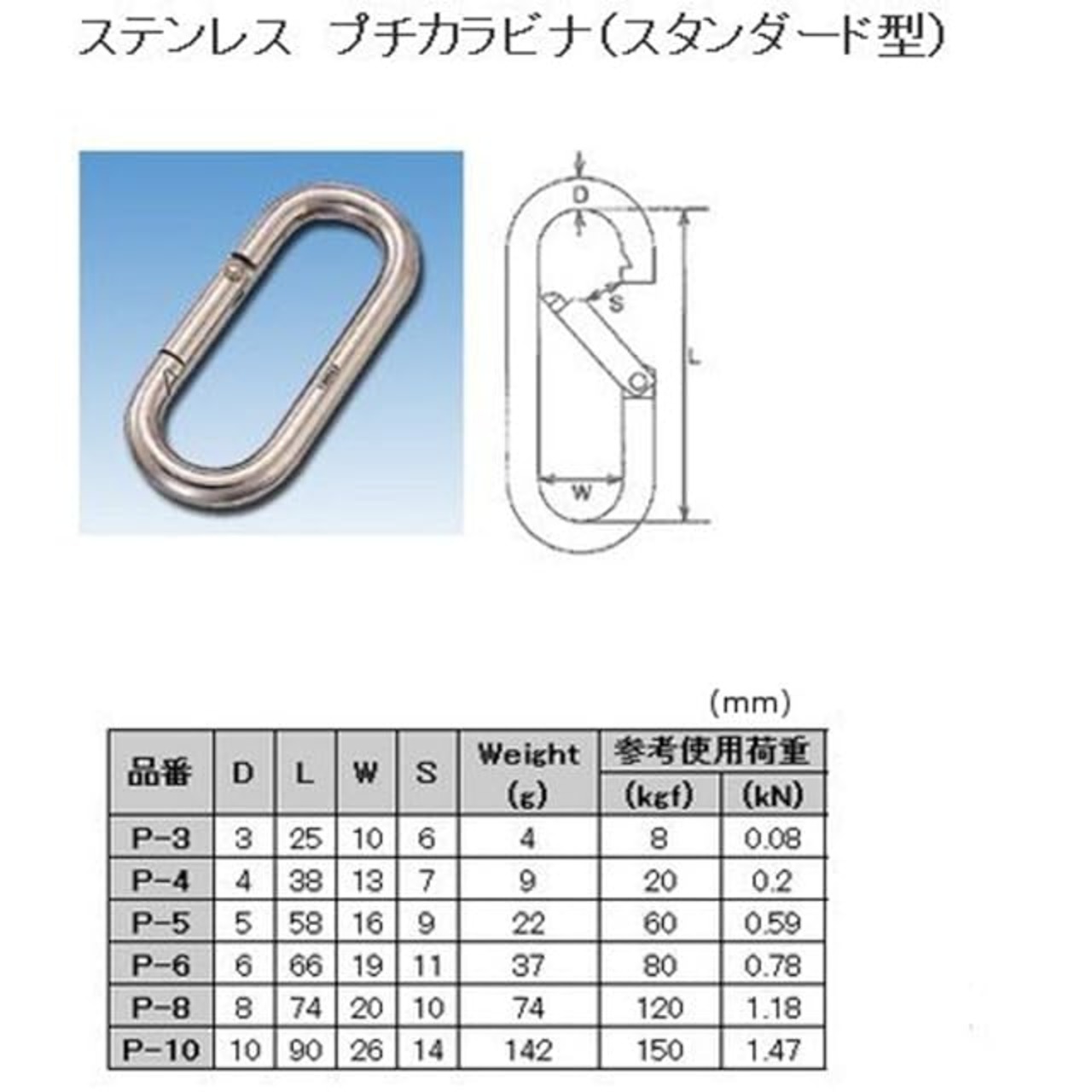 商品名:MM(水本機械) ステンレス プチカラビナ(スタンダード型) B-1256(P-4) シルバー