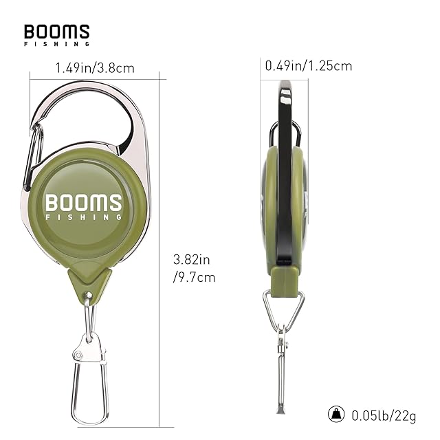 商品名:Booms Fishing RG1 カラビナ式ピンオンリール キーリール グリーン 三個