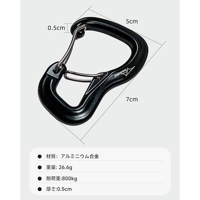 「軽量高耐荷重」:重さわずか26グラムのカラビナクリップは、8KN(800KG)の高耐荷重を誇り、アウトドア愛好家に最適です。コンパクトなデザインと滑らかな表面により、持ち運びや操作が簡単です