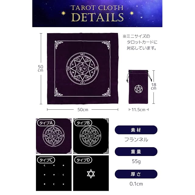 【 持ち運びに便利 】 50cm×50cmのタロットクロスですので、ミニサイズのタロットカードに向いています。収納袋付きなので持ち運びの際も便利です。