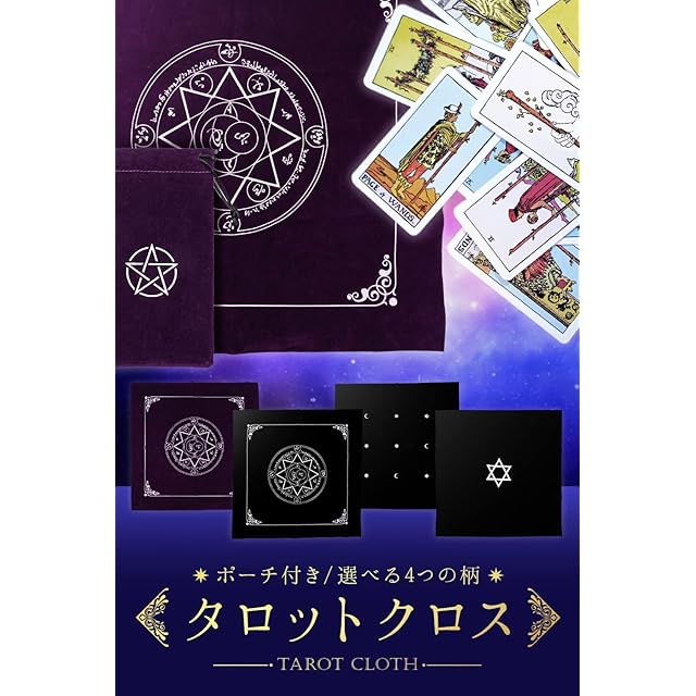 【 タロット占い 】 月や星、太陽をモチーフにした神秘的なデザインのタロットクロスです。本格的な雰囲気をお楽しみください。