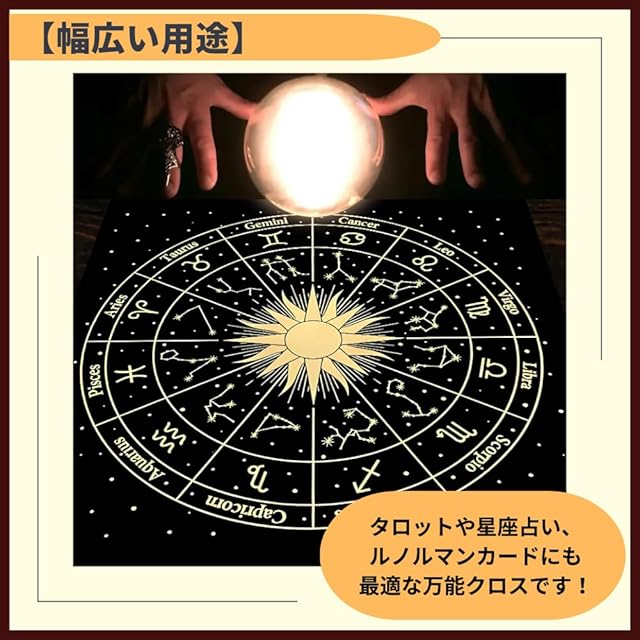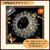 【神秘的なデザイン】星座・月相などをモチーフにした神秘的なデザインが没入感を高めます。【収納しやすい】柔らかな手触りで折りたたみ可能、場所を取らずスッキリ収納できます。【幅広い用途】タロットやルノルマンカード、星座占いにも最適な万能クロスです!【占い空間をグレードUP】すべりにくい裏面デザインで、どこでも安心して占いが楽しめます。【安心の返品・返金】もし商品にご満足頂けない場合、商品到着から30日間返品・返金対応させて頂きます。また、お困りごとがございましたら、メールサポートにて24時間日本人専任スタッフが対応致しますので、安心してお買い求めください。