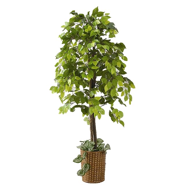 ビータ(Vita) ベンジャミン 人工観葉植物 幅70×高さ160cm フェイクグリーン 大型 竹カゴ付き 鉢付き