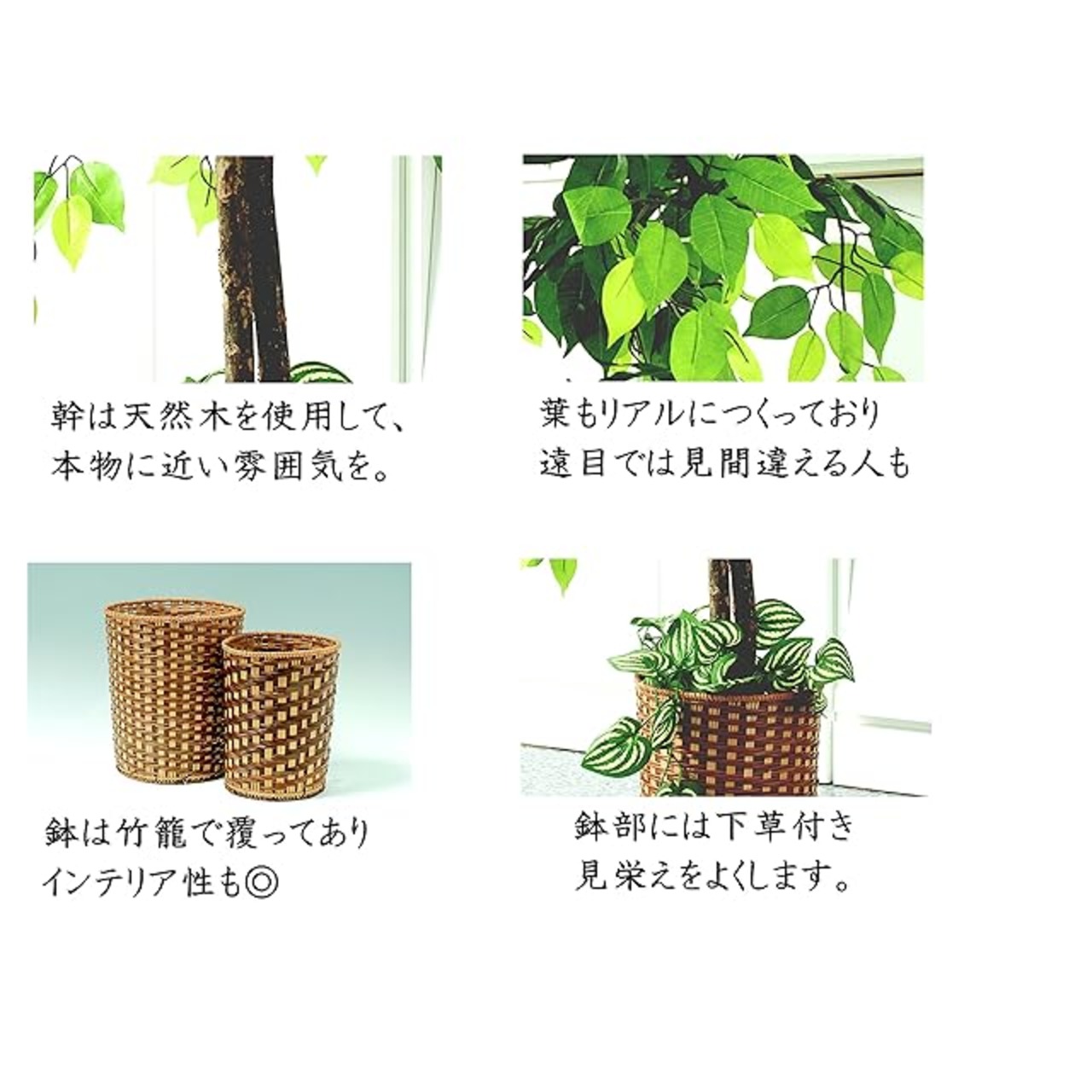 商品名:ビータ(Vita) ベンジャミン 人工観葉植物 幅70×高さ160cm フェイクグリーン 大型 竹カゴ付き 鉢付き