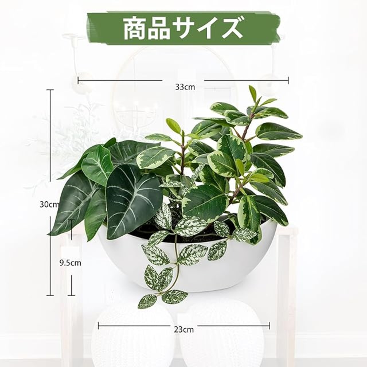 【仕様&高品質】人工観葉植物の高さは30CM、鉢の高さは23*9.5CMです。フェイクグリーンは高品質のPE材質を採用しております。グラデーション・ハローの技法を用い、葉は自然に着色されています。葉は厚く、質感がよく、遠目には本物と見間違うほどリアルです。植物は内にワイヤーを含み、細部まで心入れの作りで、葉落ち無く何度も使えて長持ちできます。
