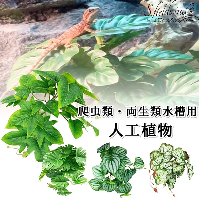 商品名:S.fields.inc 人工植物 爬虫類ケージ用 ビバリウム 水槽 葉 両生類 カメ カエル 吸盤付き ペット用品 (モンステラ)
