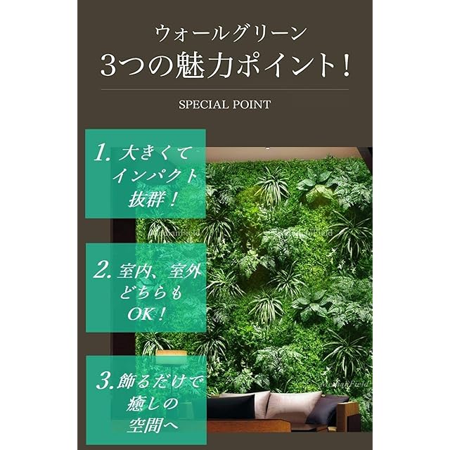 【店舗様の装飾にもおすすめ】デパートやホテル、オフィス、飲食店などの店舗様の装飾にもおすすめです。フェイクなので枯れないから衛生的ですし、大量に飾ると圧巻です。新築の装飾、店舗様の壁面緑化、ホテルのフロントやお部屋の装飾、飲食店の壁の飾りなどにおすすめです。