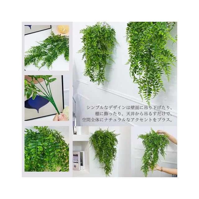 さらに、シンプルなデザインは壁面に吊り下げたり、棚に飾ったり、天井から吊るすだけで、空間全体にナチュラルなアクセントをプラス。手入れ不要のフェイクグリーンで、室内に爽やかさをキープしつつ、エコフレンドリーなポリエチレン素材を使用しているため、環境にも優しいアイテムです。
